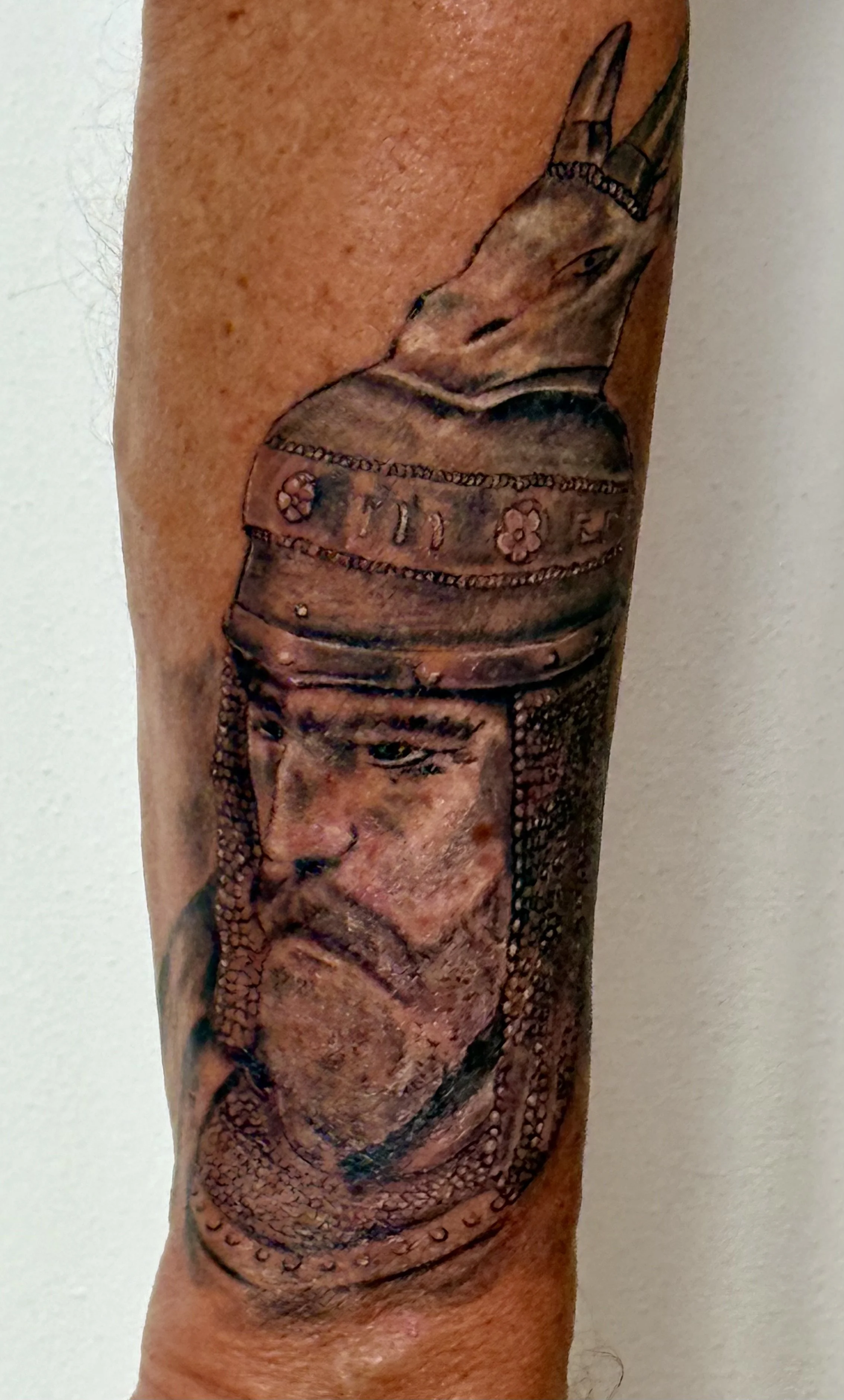 My husband’s new tattoo. This is Skanderbeg, an Albanian hero from the 13th century. I really need to write a post about him. Relatively few people outside of Albania know who he is, and yet without his actions, life as we know it might have been entirely different.